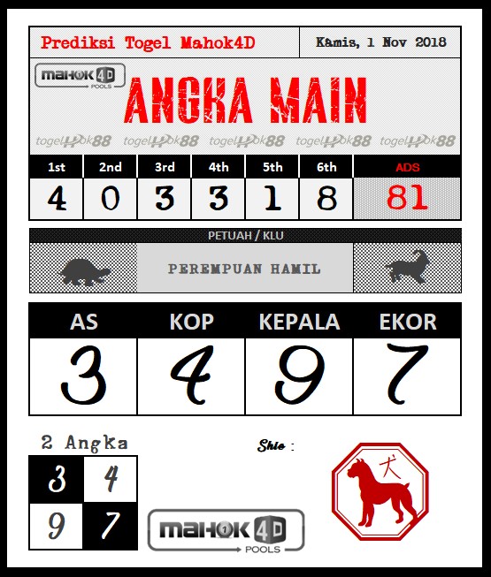 PREDIKSI MAHOK4D POOL 1 NOVEMBER 2018 Prediksi Togel Hari Ini